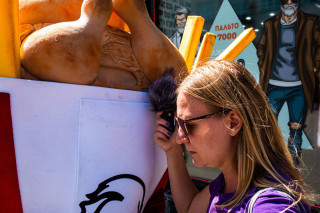 На костюм картошки люди реагируют очень по-разному. Есть люди, которые реагируют очень круто  обнимаются, вчера девочка подарила браслет Nike. А есть те, кто очень пугаются, люди обычно очень хмурые, они даже на тебя внимания не обратят, хотя это очень сложно сделать. Сейчас вот домой ехать надо, работать не сильно хочется, а деньги нужны.