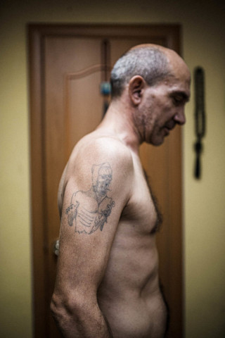 Первую татуировку я сделал еще малолеткой. Вместо туши для татуировок на зоне мы жгли и резали каблук, потом перетирали в порошок и разбавляли с мочой. И сидишь целыми днями – тыкаешь, тыкаешь иголкой. «Скорее лев откажется от мяса, чем женщина – от подлости и лжи». И вот эта «Чем больше познаю людей, тем больше нравятся собаки». Раньше у меня был перстень пацана «Привет ворам», но в автобусе косились, поэтому я наколол вот эту другую сверху в Таиланде. Одну татуировку я удалил. Я не знал, что это означало, когда ее наколол, уже потом выяснил, что крест и полосочка – это безотцовщина. Потом думаю – нах… мне безотцовщина, когда у меня батя живой. Берешь пластиковый стержень от ручки, вытаскиваешь шарик, поджигаешь зажигалкой и дуешь. Кожа взбухает, горит на глазах, подгорает, волдырь появляется. Там на зоне сырость, она еще и гнила потом месяц. Может, зараза какая-то попала.