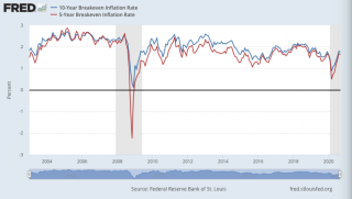 Стоит также отметить, что энергичные действия ФРС в месяцы пандемии не привели к росту инфляционных ожиданий. На следующие 5–10 лет они уже около 1,8%, но это все еще ниже цели ФРС в 2%.