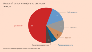 На дорожный транспорт, по данным МЭА, приходится почти половина мирового спроса на нефть, а включая авиа- и морской – более 50%.
