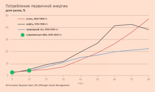 В последние два века новому виду топлива требовалось около 40 лет, чтобы его доля в потреблении первичной энергии достигла 15–20%, указывает Чембалест со ссылкой на расчеты Вацлава Смила, заслуженного профессора факультета окружающей среды Университета Манитобы и члена Королевского научного общества Канады. Современные ВИЭ развиваются лишь около 10 лет.