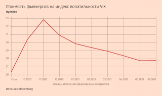 Фьючерсы на октябрь, ноябрь (особенно) и декабрь стоят дороже, чем на начало 2021 г.; это признак того, что повышенная волатильность, по мнению инвесторов, может сохраниться до конца года. В то время как сам индекс VIX в последние дни составляет около 27 пунктов, ноябрьский фьючерс на него стоит около 33 пунктов, декабрьский – около 31. В конце августа фьючерсы стоили примерно 29 и 28 пунктов соответственно. И если в прошлом профессиональные участники рынка заявляли, что практически не учитывают политику при принятии инвестиционных решений, то сейчас президентские выборы «оцениваются как одно из самых волатильных ожидаемых событий всех времен», говорит Майк де Пасс, руководитель глобального отдела торговли гособлигациями Citadel Securities (цитата по The Wall Street Journal).