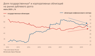 - ожидание низких ставок на фоне рекордно низкой ключевой в среднесрочной перспективе повышает привлекательность долгосрочных инвестиций (в том числе гособлигаций) и компенсирует банкам рыночные риски и риски ликвидности.
