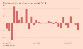 Прошлая неделя стала худшей для цен на нефть за последние шесть месяцев. Трейдеры и аналитики пытаются оценить размер ущерба, который нанесут спросу новые ограничительные меры во Франции, Германии и других европейских странах. Для отрасли, сильно пострадавшей от карантина еще весной, когда мировое потребление нефти сократилось примерно на четверть, спровоцировав обвал цен, вторая волна пандемии несет много рисков.