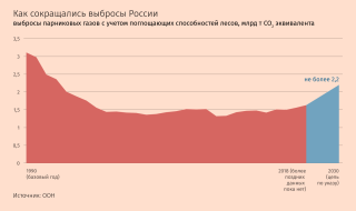 Амбициозных целей Россия не ставит – в указе 2013 года задача была примерно такой же: в 2020 г. выбросы должны составлять 75% от уровня 1990 г. В материалах, которые Россия представляла в ООН, цифра объяснялась тем, что она «не создает препятствия для социально-экономического развития».