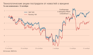 «С точки зрения медицины сомнения, конечно, важны, но с точки зрения рынка – нет», – говорит Салман Баиг, управляющий фондами смешанных инвестиций Unigestion в Женеве. Президентские выборы в США закончились, не оставив никаких сомнений в том, что в январе Джо Байден вступит в должность, а новость о вакцине впервые открыла реальную возможность возвращения к нормальной жизни уже в следующем году: «Риски от двух главных источников неопределенности стали гораздо ниже. С этого момента на рынках должно начаться широкое ралли».