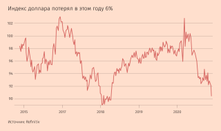 Уже три недели доллар движется вниз, одновременно подталкивая другие валюты к многолетним максимумам, поскольку инвесторы ожидают, что вакцины помогут быстрому восстановлению мировой экономики в следующем году. За последнюю неделю доллар потерял 1,2% по отношению к корзине валют развитых стран, в результате чего его падение с начала года превысило 6%.