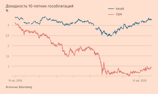 Несмотря на то, что Китай первым пострадал от пандемии, для его рынков капитала 2020 г. стал очень успешным — иностранные инвесторы скупили акций и облигаций на сумму более 1 трлн юаней ($153 млрд). Китайский индекс CSI 300 вырос в долларовом выражении примерно на 27%, опередив S&P 500 более чем на 13 процентных пунктов. Ориентированный на технологии шэньчжэньский ChiNext вырос примерно на 59%, превысив даже показатель американского NASDAQ Composite. Китайские государственные облигации также привлекли новых инвесторов своей редкой в нынешних условиях высокой доходностью.