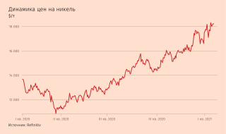 Цена никеля на Лондонской бирже металлов выросла с мартовского минимума на 70% до $18 410/т на прошлой неделе (сейчас она немного превышает $18 000). Спекулянты сделали ставку на рост спроса на металл в результате увеличения выпуска электромобилей, в которых все больше используются аккумуляторы с повышенным содержанием никеля. Прогнозы сильного роста продаж электромобилей в связи с многочисленными госпрограммами по обеспечению зеленого восстановления экономики привели к повышению цен и на другие используемые в производстве металлы, включая медь и литий.