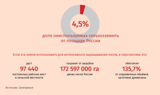 По оценке «Гринпис», около 30 млн га таких земель уже заросло лесом, еще пара десятков миллионов гектаров находится на разных стадиях зарастания.