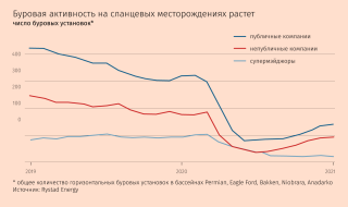 В основном активность наращивают непубличные компании, на долю которых приходится около 30% добычи сланцевой нефти; при этом они не испытывают такого же давления, как публичные компании, со стороны инвесторов, требующих повысить прибыльность и выплачивать дивиденды. «Единственная возможность для них получать деньги — нарастить масштаб и рвануть», — говорит Галлахер.