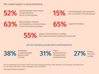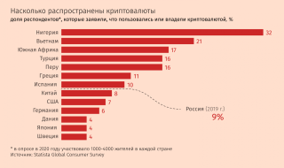 Людей, которые уже познакомились с биткойном или другой криптовалютой, становится все больше. Одни, как Лана, использовали его в расчетах, другие заинтересовались им из-за феноменального роста курса. Число криптопользователей в мире выросло с 5,8 млн в середине 2017 г. до 101 млн в III квартале 2020 г., показало исследование криптобиржи Binance. Согласно глобальному опросу ресурса Statista.com, криптовалютой владеют или когда-либо пользовались от 4% респондентов (Дания, Швеция, Япония) до 30% (Нигерия).