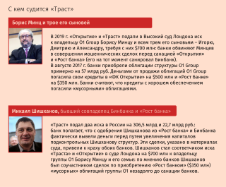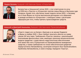 Банк непрофильных активов «Траст», куда ЦБ собрал плохие и непрофильные активы «Открытия», Бинбанка и Промсвязьбанка, придумал игру «Улики и алиби», цель которой — искать беглых финансистов, находить выведенные ими активы по всему миру и предъявлять обвинение. Игра разработана по мотивам работы банка: в судах Москвы, Кипра, Лондона и Нью-Йорка «Траст» пытается вернуть деньги с бывших собственников банков и их крупнейших должников.