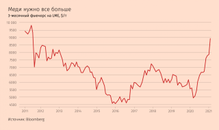 Медь дорожает уже три недели подряд. Аналитики ведущих инвестбанков, от Citi до JPMorgan Chase, прогнозируют наступление нового суперцикла на сырьевых рынках: спрос будет превышать предложение, стимулируя долгосрочный рост цен, в результате масштабных инвестиций в оборудование, технологии и инфраструктуру в рамках борьбы с изменением климата, а также благодаря улучшению экономической ситуации в мире после массовой вакцинации.