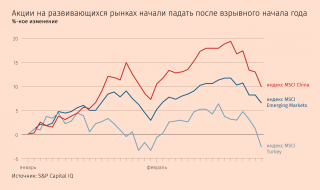 Пока же давление продавцов растет. Фондовый рынок Китая, показывавший одни из лучших результатов благодаря быстрому восстановлению экономики страны, сильно просел за последнюю неделю. Местный индекс акций крупнейших компаний CSI 300, взлетавший на торгах 18 февраля до 5931 пункта, упал к закрытию пятницы до 5336,8 (снижение на 10%). Индекс технологических компаний ChiNext на Шэньчжэньской фондовой бирже потерял 13%.