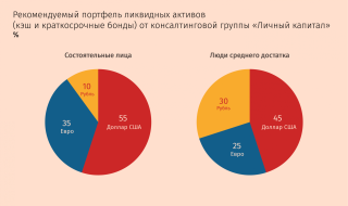 Среднестатистическому представителю среднего класса с рублевым доходом Потапов и другие эксперты рекомендуют распределить активы между рублем, евро и долларом, отдав предпочтение той валюте, в которой планируются основные расходы в будущем.