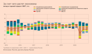 Основным драйвером восстановления будет оставаться потребительский спрос, писали аналитики ЦБ (их мнение может не совпадать с официальной позицией). На продолжение восстановления потребительской активности указывает рост расходов населения, свидетельствуют данные Сбериндекса и операторов онлайн-касс. Если за второе полугодие 2020 г. потребление сократилось на 0,4%, то только за январь — февраль 2021 г. оно увеличилось на 5%, отмечает Николай Кондрашов из Центра развития Высшей школы экономики. Продолжают восстанавливаться и промышленные производства, а также сектор услуг — общий индекс PMI в марте вырос до 54,6 пункта с 52,6 пункта в феврале. Превышение отметки в 50 пунктов говорит о росте деловой активности. Всего, по оценкам Центра развития, пройдено 90% пути восстановления до докризисного уровня.