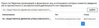 Росфинмониторинг внес «Общественное движение „Штабы Навального“» в перечень организаций, в отношении которых есть сведения о причастности к экстремистской деятельности или терроризму. Это следует из данных на сайте ведомства.