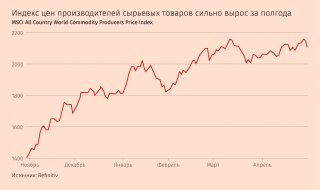 А цена самого важного промышленного металла, меди, поднялась выше $10 000 за тонну впервые с 2011 г. S&P GSCI, индекс спотовых цен на 24 сырьевых товара, вырос на 24% с начала года.