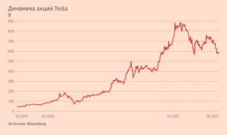 8 же января рост и застопорился. В ходе торгов 25 января цена смогла еще подрасти до $900,4, а с середины февраля начала уже падать. С максимума акции Tesla подешевели на 36%.