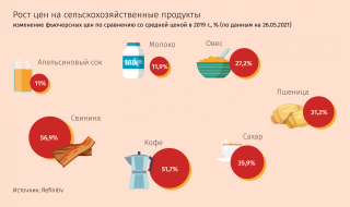 Стоимость сырья, использующегося для приготовления популярных утренних блюд, сильно выросла с начала пандемии, особенно рост на некоторые сельскохозяйственные товары ускорился в этом году. Это порождает опасения, что бум, охвативший сырьевые рынки в целом, приведет к устойчивому росту глобальных цен на продукты питания. В ряде стран подорожание продовольствия уже стало проблемой.