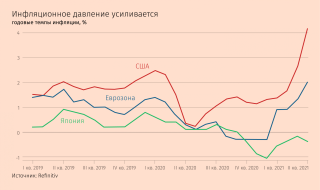 Если это так, ФРС придется в ближайшие месяцы в одиночку делать непростой выбор. Инфляция заметно превышает цель центробанка, спрос растет, экономика переживает бум, и ФРС нужно будет решать, стоит ли ее тормозить и как это сделать наиболее безопасным способом.