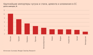 Крупнейшая доля на европейском рынке стали у Турции (18%), за ней идут Россия (почти 15%) и Южная Корея (11%), по данным Eurofer.