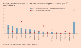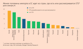 Параметры сбора — не единственный фактор, который повлияет на импортеров. Высока вероятность того, что ЕС договорится со странами, в которых есть собственная ETS или ее аналог; они смогут применить свою национальную углеродную цену и полностью или частично компенсировать трансграничный сбор ЕС, считает Morgan Stanley.