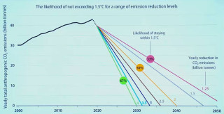 - Стабилизировать рост мировой температуры на уровне 1,5° все еще возможно, но необходимы решительные меры на глобальном уровне. Очень важно предпринять их именно в этом десятилетии. Нужно сокращать минимум по 2 Гт (миллиард тонн) выбросов углекислого газа в год, или около 5% от нынешнего уровня выбросов (42 Гт). Тогда будет 50%-ный шанс уложиться в 1,5°. Чтобы иметь 67%-ный шанс, нужно сокращать по 4 Гт в год.