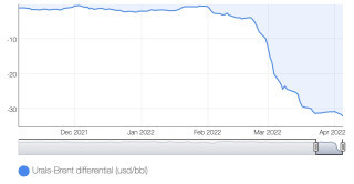 Средняя экспортная цена Urals в марте составила 89 долларов за баррель, сообщил Минфин. Иными словами, каждая партия уходила зарубежным покупателям со скидкой около 20%. В начале месяца дисконт Urals составлял 10 долларов за баррель, к его концу достиг 30 долларов, а в начале апреля установил новый рекорд. Трейдер Trafigura выставил на продажу партию с отгрузкой через Балтийское море по цене на 35 долларов ниже Brent.