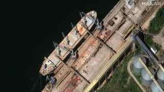 Телеканал CNN опубликовал новые спутниковые снимки Maxar Technologies. На них видно, как два российских сухогруза загружают предположительно украденным украинским зерном в порту Севастополя.