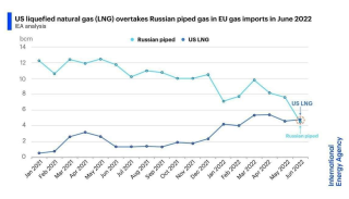 «Недавнее резкое сокращение поставок российского газа в ЕС означает, что [июнь] стал первым месяцем в истории, когда ЕС импортировал больше газа в виде СПГ из США, чем по трубопроводам из России», — написал в Twitter исполнительный директор Международного энергетического агентства Фатих Бироль.
