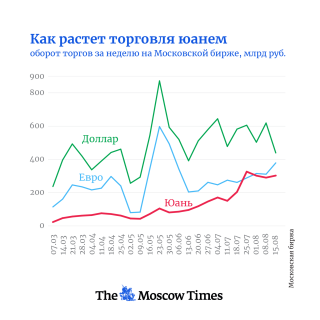 Юань прочно вошел в тройку главных валют на российском рынке и с начала июля пытается оттеснить евро на второе место. В последнюю неделю июля ему это даже удалось, а в четверг он какое-то время обгонял даже доллар, но по итогам торгов все же вернулся на свое третье место.