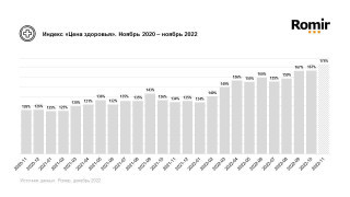 По оценке «Ромира», инфляция лекарств в 2022 году состояла из двух волн: первая — с февраля по апрель — подняла индекс «цена здоровья» на 16,4%, вторая началась осенью и добавила к ценам еще более 11%.