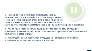 Как перестать тормозить и прятаться Обновлено: 14.01.2023 Скопировано! Второй сезон психологического сериала о том, что происходит с нами и внутри нас в наше ужасное время, открывается с публикации о жизни для себя – пусть обстоятельства этому и не способствуют Скопировано!