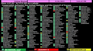 В документе А/77/L.65 «Сотрудничество между ООН и Советом Европы» говорится о «беспрецедентных вызовах», которые стоят перед Европой «после агрессии Российской Федерации против Украины, а до этого против Грузии».