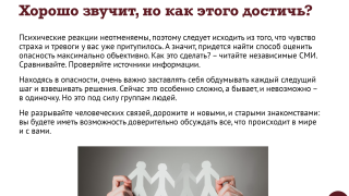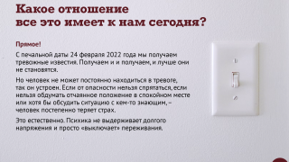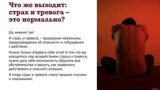 Важность страха и ценность тревоги 02.06.2023 Скопировано! Ужасные новости поступают каждый день, и от обыденности зла ощущение беды притупляется. Новый выпуск психологического сериала – о том, что об опасности забывать нельзя! Скопировано!