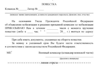 В повестке также содержится рекомендация взять с собой в военкомат, помимо документов, туалетные принадлежности и продукты питания на один день. В конце призывников предупреждают, что неявка в военкомат без уважительной причины влечет административную и уголовную ответственность.