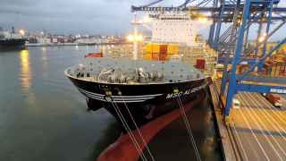 По его словам, контейнеровоз Joseph Schulte, пребывавший в Одесском порту с 23 февраля прошлого года, под флагом Гонконга и с 30 тыс. тонн груза, включая продовольствие, движется по установленному Киевом гуманитарному коридору.