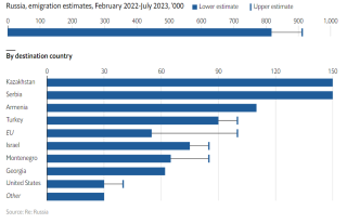 Больше всего россиян приняли Казахстан и Сербия — примерно по 150 000. Около 100 000 уехали в Армению, не менее 90 000 — в Турцию, более 70 000 — в Израиль, почти 60 000 — в Евросоюз.