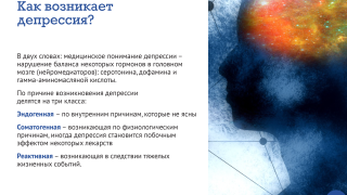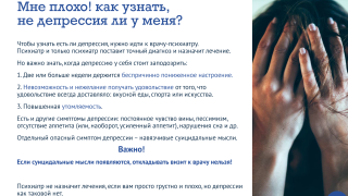 Плохое настроение – или уже пора к врачу? 02.02.2024 Скопировано! Обстоятельства нынешней жизни таковы, что радости в ней мало. Но как отличить обычное уныние от патологических изменений? Об этом – в новом выпуске нашего психологического сериала. Скопировано!