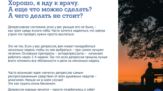 Плохое настроение – или уже пора к врачу? 02.02.2024 Скопировано! Обстоятельства нынешней жизни таковы, что радости в ней мало. Но как отличить обычное уныние от патологических изменений? Об этом – в новом выпуске нашего психологического сериала. Скопировано! Больше галерей Мнения Наши лучшие целители: Софокл, Довлатов и Ремарк Мнения Психологическая перезарядка, или Зачем нам Новый год Мнения Переварить чужбину, или Как кулинария помогает обустроиться в новых обстоятельствах Мнения Отложите все дела, или Как быть, если жить не хочется Подпишитесь на нашу рассылку Подписаться Утренняя Еженедельная Спасибо за подписку!