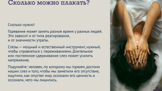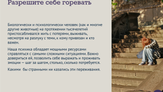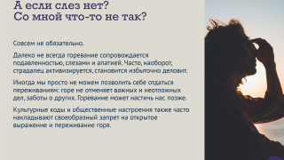 У нас огромное горе! Как его избыть? 23.02.2024 Скопировано! Когда мы лишаемся кого-то важного, значимого – как реагировать? Плакать? Злиться? Пытаться забыться? В новом выпуске нашего психологического сериала мы обсуждаем горевание, его длительность и особенности. Скопировано!