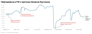 По словам Крутихина, на реальное сокращение добычи Россия пошла только однажды, в 2020 году, во время пандемии, а все остальное время Россия притворялась, что способна варьировать добычу: нефтяные компании игнорировали призывы правительства сокращать добычу, а правительство не в состоянии заставить компании это сделать.