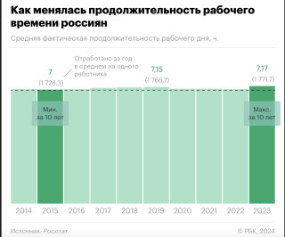Это заметно каждому, кто занят хотя бы каким-то бизнесом, но теперь еще это заметно из данных Росстата: россияне стали работать рекордно долго. Даже нет, не стали – им приходится работать рекордно долго.