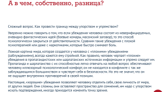 Убеждения помогают человеку выжить – это касается и «хороших» убеждений, и «плохих». В чем между ними разница и почему человеку выгоднее быть самим собой, а не следовать заблуждениям – в новом выпуске нашего психологического сериала.