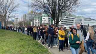 Очередь у консульского отдела посольства РФ к полудню превысила 500 метров.