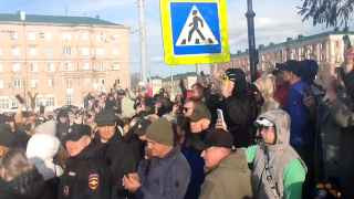 Люди кричат: «Позор», встав лицом к мэрии, где в этот момент находятся глава города Василий Козупица и губернатор региона Денис Паслер, а также скандируют: «Путин, помоги!» Полицейские требуют покинуть площадь, называя митинг незаконным. Также они заблокировали вход в мэрию патрульными машинами.