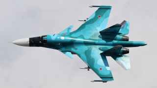 Истребитель-бомбардировщик Су-34 предназначен для нанесения точных ударов по наземным целям в оперативной и тактической глубине, а также поражения воздушных целей. Экипаж самолета состоит из двух человек — летчика и штурмана. Су-34 может развивать скорость на высоте до 1900 км/ч. Дальность полета без дозаправки составляет 4500 км.