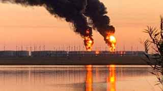 Пожарные вторые сутки не могут потушить нефтебазу в Пролетарске Ростовской области, которая загорелась после атаки беспилотников. В городе ввели режим чрезвычайной ситуации, сообщила местная администрация.